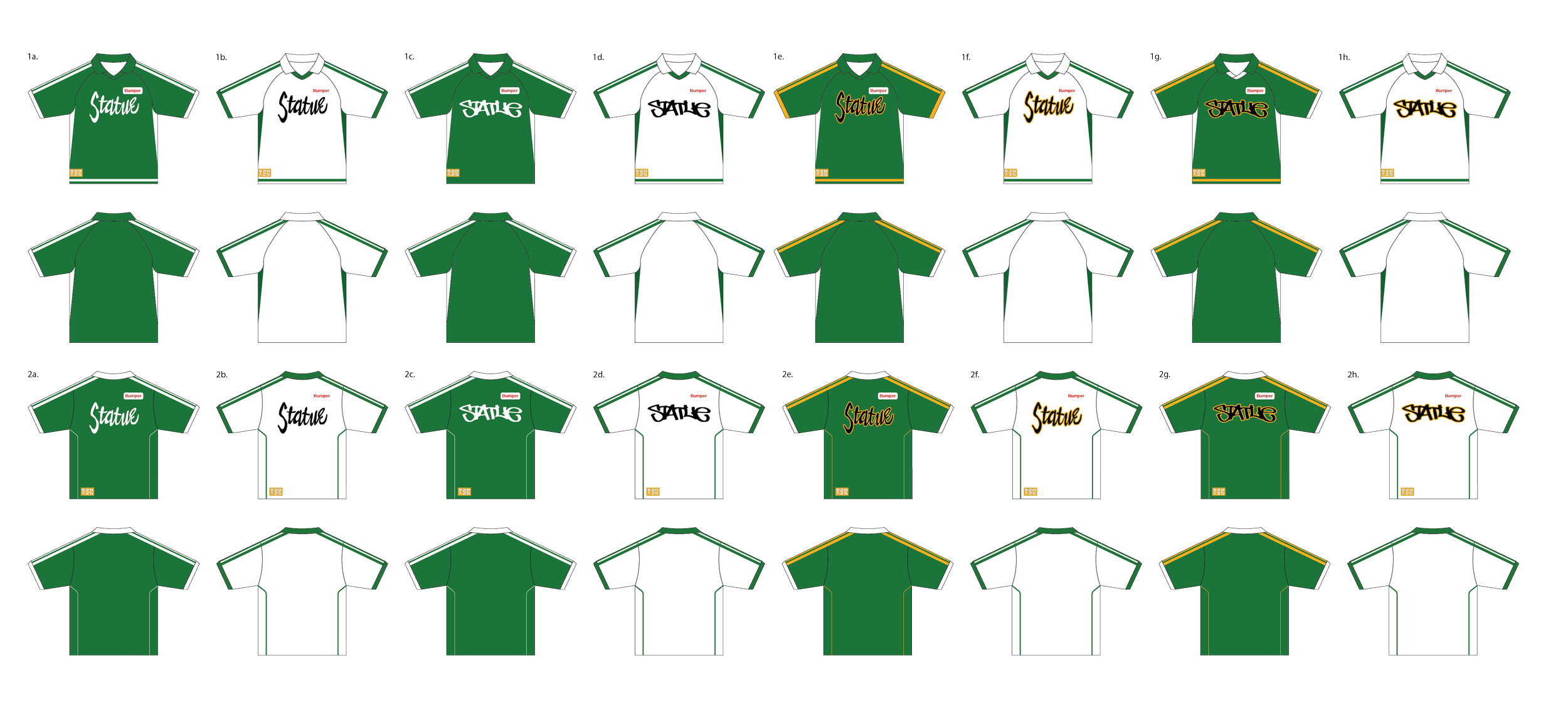 Mockup iterations, techpack, and final production soccer jersey for Statue Films. Soccer jerseys are a ton of fun to design because their history is so rich: you could spend weeks exploring the different fits, cuts, and application processes throughout the years. For this jersey, we took inspiration from wide cut, early-2000’s jerseys and added decorative piping and arm stripes.